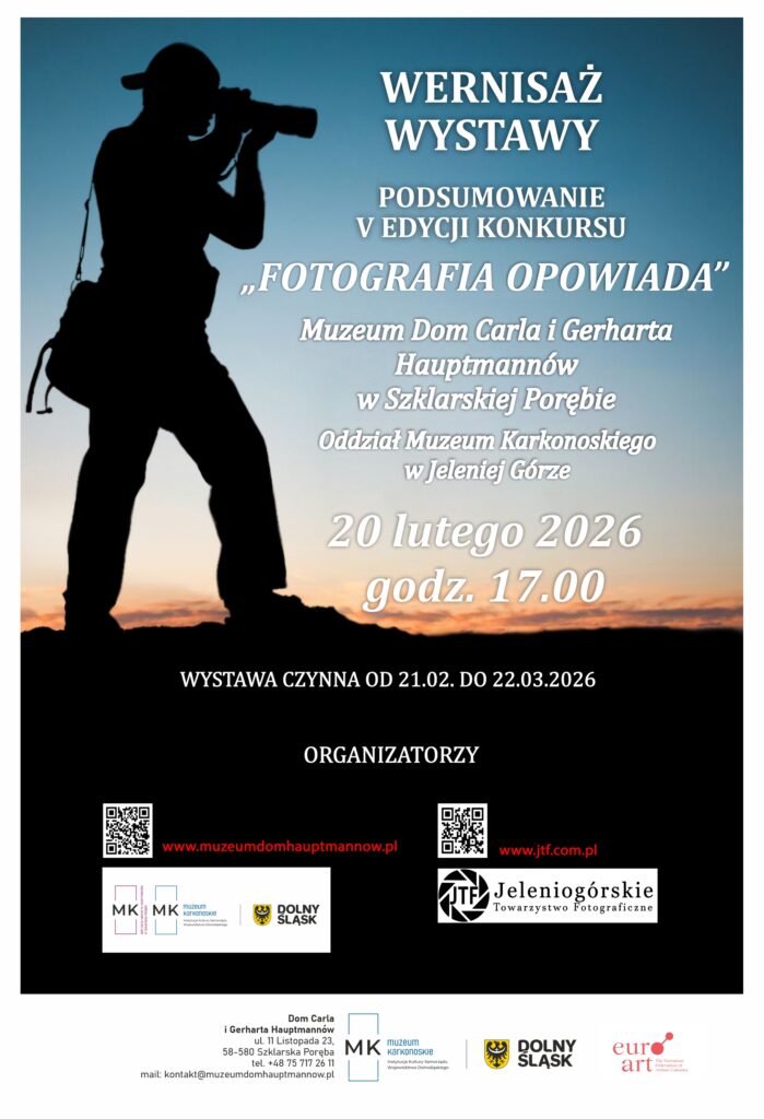 Konkurs fotograficzny „FOTOGRAFIA OPOWIADA”, organizowany nieprzerwanie od 2021 roku, stał się ważnym i rozpoznawalnym wydarzeniem kulturalnym regionu. Inicjatywa realizowana jest przez Dom Carla i Gerharta Hauptmannów w Szklarskiej Porębie – Oddział Muzeum Karkonoskiego w Jeleniej Górze – we współpracy z Jeleniogórskim Towarzystwem Fotograficznym. Z każdą kolejną edycją konkurs przyciąga coraz większe grono uczestników oraz odbiorców, potwierdzając rosnące zainteresowanie fotografią jako formą opowiadania o świecie, emocjach i człowieku.